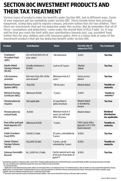 To know how much you can invest in each section, first look at your existing commitments that you have paid or need to pay this year. Check how much you have contributed towards the Employees’ Provident Fund (EPF), which directly gets deducted from your salary. Apart from life and health insurance premium, also consider the mandatory contributions towards Public Provident Fund, National Pension System (NPS) or Sukanya Samriddhi account. If you have invested in these, a minimum contribution is required every year. Most of these instruments provide deduction under section 80C of the income tax Act, which has an overall limit of Rs1.50 lakh. Remember, there is an additional tax benefit of Rs50,000 under section 80CCD (1B) for investment in NPS.
